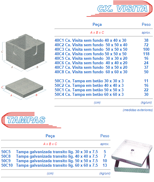 Tal como o nome indica, são tampas feitas em betão que servem para tapar as respectivas caixas.